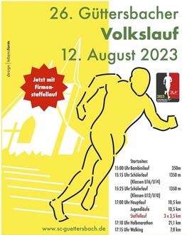 Weitere Informationen erhaltet Ihr auf unserer Homepage unter www.sc-guettersbach.de. Die Anmeldung ist bis einschließlich Mittwoch 09. August 2023 online unter der gleichen Adresse möglich. Am Veranstaltungstag ist eine Nachmeldung bis spätestens 30 min. vor Laufbeginn möglich.