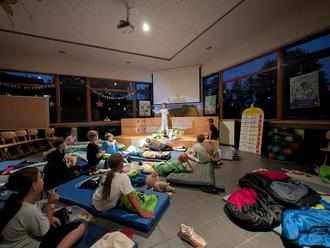 Bepackt mit Isomatten und Schlafsäcken, Taschenlampen, Kuscheltieren und natürlich vielen Büchern wurden die Kinder von ihren Eltern gebracht. Obst und Knabberzeug fehlte auch nicht.