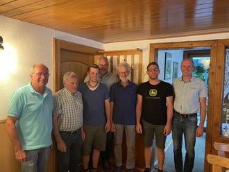 Reiner Neff mit den anwesenden Jubilaren (v. l.) Hans Ihrig, Sebastian Walther, Herbert Muth, Herbert Krämer, Marc Oliver Horn und Mirco Rexroth.