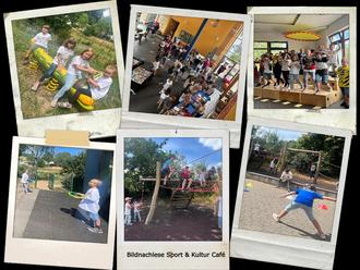Am 03.07.23 um 14 Uhr, begrüßte die Schulleiterin, Frau Hartnagel, alle Schüler*innen, sowie das Schulpersonal, alle anwesenden Eltern und eröffnete somit das Programm des Sport & Kultur Cafés. In der ersten halben Stunde, haben die Klassen 1 bis 3 aufgeführt was sie in Sachen Musikkultur mit ihrer Musiklehrerin, Frau Schubert, geübt hatten. Danach wurde jede/r Schüler*in gebührend für das erfolgreiche Abschließen der Bundesjugendspiele mit Urkundenübergabe gefeiert. Anschließend wurden dann die Cafézeit, die Vernissage im Schulhaus und die sportlichen Mitmachangebote auf dem Schulhof und im Schulhaus eröffnet. Im Café gab es dank zahlreicher Spenden der Eltern und Bäckereien aus den AGs reichlich Kuchen, Muffins und weitere leckere Dinge für Groß und Klein.