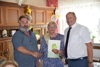 Bürgermeister Dietmar Bareis und Ortsvorsteher und Gemeindevertreter Thomas Hofmann sprachen ihr die herzlichsten Glückwünsche der Gemeinde Mossautal aus und wünschten ihr noch viele gesunde Jahre.