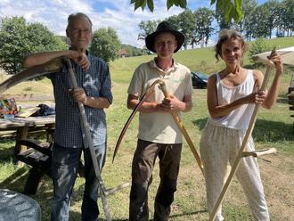 Zum Ersten, zum Zweiten, zum Dritten: Handsensen-Workshop in Güttersbach