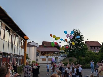 Nach dem Auszug aus dem Schulhaus wurde auf dem Hof weitergefeiert: Die Koalas führten ihren einstudierten Tanz zu „Fantasy Girl“ auf – und anschließend stiegen bunte Luftballons mit Wünschen der Eltern in den Himmel. Ein fröhlicher und farbenfroher Abschlussmoment.