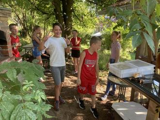 14 Kinder, 8 Mädchen und 6 Knaben, im Alter von 6 bis 12 Jahren hatten sich zu dem Event "Pizza aus dem Steinofen und Spiele" angemeldet, um am Montag, 11. August, einen Nachmittag voller Spaß und Gemeinschaft zu erleben. Neben dem kreativen Belegen und Backen der Pizzen im Steinofen wurden als Outdoor-Aktivitäten Wikinger Schach, Boule, Jonglieren und ein Ratespiel angeboten. Alle hatten ausreichend Zeit, um sich an den 4 Stationen zu erproben und zu verbessern. Und als Belohnung am Ende eine Pizza nach eigener Auswahl, ein köstliches Eis der Molkerei Hüttenthal und noch ein Abschlusstänzchen bis die Eltern kamen.