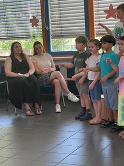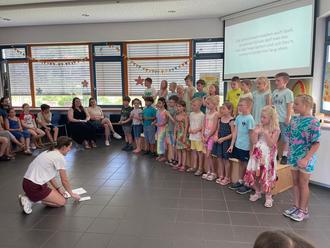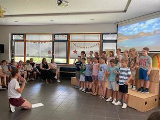 Die Kinder gestalten mit vollem Einsatz die Verabschiedung