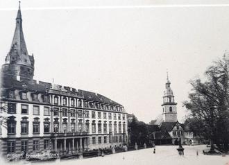 Den 29. Juli [1920] machte die Schule mit der von Hüttenthal einen Ausflug in das Mümlingtal. Unter Führung von Herrn Arnold, Hüttenthal, gings über Günterfürst, Erbach, nach Michelstadt, wo das vor wenigen Jahren gegründete Odenwaldmuseum, sowie die Kirche, das Rathaus u.s.w. besichtigt wurden. Zur Mittagszeit ruhte man sich in der Wirtschaft von Dörr aus, stärkte und erfrischte sich. Um 1 Uhr wurde wieder aufgebrochen und in Erbach den Rittersaale noch ein Besuch abgestattet, für den der Tag allerdings nicht glücklich gewählt war, denn Arbeiter waren noch mit Aufräumungsarbeiten beschäftigt, da der Saal zur Abhaltung der wenige Tage vorher stattgefundenen Hochzeitsfeier des Grafen Alexander [Franz Alexander Graf zu Erbach-Erbach *1891 +1952] eingerichtet war. Der Heimweg führte über Elsbach.