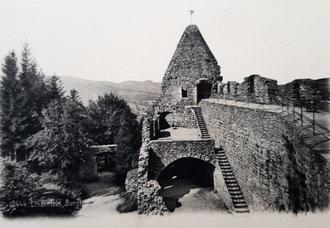 Am 10. Mai 1921 besichtigte die Güttersbacher Schule die Burgruine Lindenfels. Hier eine frühe historische Aufnahme (um 1900).