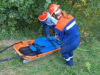 Die verletzte Person wurde auf der Schleifkorbtrage platziert