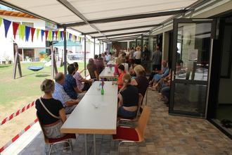 Die Erzieherinnen brachten sich schließlich mit einem Gedicht ein, in dem sie den Kindergarten aus Sicht der Kinder thematisierten. Am Ende waren die Kinder selbst noch in Aktion und hatten sichtlich Spaß bei ihrem Vortrag des Liedes „Besucht uns mal im Kindergarten“. Danach hatten die Besucher Gelegenheit die Einrichtung zu besichtigen, in einer Präsentation den Bauverlauf zu verfolgen und mit den Erzieherinnen ins Gespräch zu kommen.