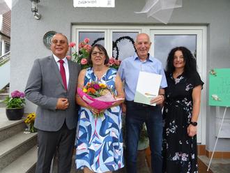 Bürgermeister Dietmar Bareis und Ortsvorsteherin und Tochter Tanja Thomasberger gratulierten dem Ehepaar Christiane und Werner Thomasberger mit den besten Wünschen für viele weitere glückliche Jahre in Gesundheit und Zufriedenheit.