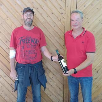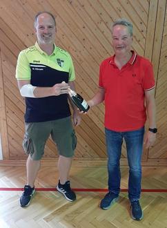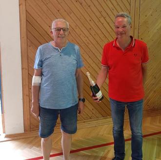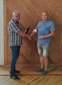 Timo Lammer erhält von Lothar Sauer ein Präsent für die 25. Spende