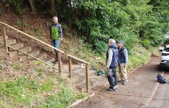 Mit bewundernswertem Ehrgeiz legten die Kinder einen zugewucherten Gehweg frei. Weder durch den beginnenden Regen noch durch Bitten der Erwachsenen ließen sie sich davon abbringen, ihre Arbeit zu Ende zu bringen.
