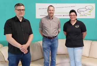 V. r. n. l.: Birgit Müller, Inhaberin des Unternehmens „Gesundes Schulcatering“, traf sich mit Frank Wedekind (Arbeitgeberservice im KJC) und Marco Fries (Teamleiter Eingliederung im KJC).