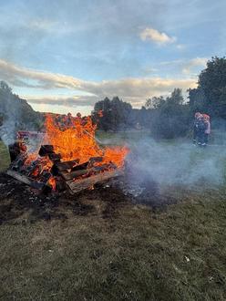Nach dem Einrichten der Schlafplätze begann der Abend mit Teambuilding-Spielen und einem Besuch der,,Wasserteufel Mossautal”, die bald selbst in die Jugendfeuerwehr übertreten. Schon wenig später folgte der erste Alarm: Ein Brand an der Freizeitanlage, bei dem eine Gartenhütte in Mitleidenschaft gezogen wurde. Die Jugendlichen bauten eine Wasserversorgung aus offenem Gewässer auf und löschten das Feuer mit drei Trupps. Nach einem gemeinsamen Grillen ging es mit weiteren Einsätzen weiter: Eine Ölspur mit umgestürztem Baum sowie die nächtliche Suche nach einer vermissten Person am Sportplatz forderten die Nachwuchskräfte, bevor der erste Tag am Lagerfeuer ausklang.