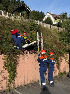 Nach der Übung ging es mit einem Volleyballspiel und weiteren Teambuilding-Aktivitäten weiter. Am Abend wurde noch eine Tragehilfe für den Rettungsdienst mittels Leiterhebel geübt.