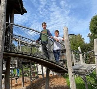 Am 4.10.2022 machten sich alle Schülerinnen und Schüler der Grundschule Mossautal inklusive aller Lehrkräfte auf den Weg zur „alla hopp Anlage“ in Unter-Abtsteinach. Bevor es aber zu dem großen aufregenden Spielplatz ging, wurde noch ein langer Spaziergang durch den Wald und Kunstwanderweg in Ober-Abtsteinach gemacht. Als die Kinder durch den herbstlichen Wald liefen, kamen sie an einem besonderen Stein, dem Teufelsstein vorbei. Dort wurde dann, nach den anstrengenden ersten Metern, eine Pause eingelegt. An dieser Stelle erklärte schließlich Frau Hartnagel, wieso der Teufelsstein „Teufelsstein“ heißt, und daraufhin haben sich alle Kinder den großen Stein interessiert angeschaut. Danach ging es bei bestem Wanderwetter weiter Richtung Spielplatz-Anlage. Endlich angekommen auf dem Spielplatz, stürzten sich alle Kinder auf die Spielgeräte und hatten sehr sehr viel Spaß. Die Rückfahrt mit dem Bus stand viel schneller an, als gewünscht.