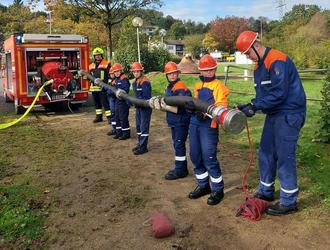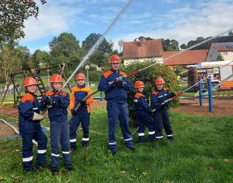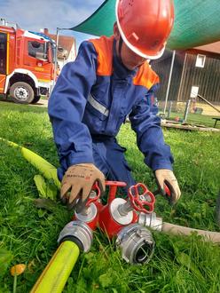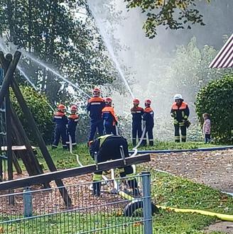 Nach der zügigen Ankunft am Einsatzort stellten die Jugendlichen ihr Können unter Beweis und bauten in kürzester Zeit die Wasserentnahme am offenen Gewässer auf und versorgten anschließend das Löschfahrzeug mit ausreichend Wasser, um 6 Strahlrohre vorzunehmen. Dank des schnellen und reibungslosen Vorgehens konnte das Feuer unter Kontrolle gebracht und ein Übergreifen verhindert werden.