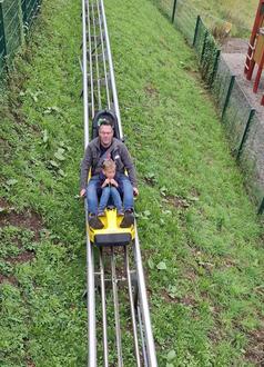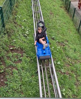Am 27.9. machten sich 21 Wasserteufel (teilweise mit elterlicher Begleitung) auf den Weg zur Sommerrodelbahn auf die Kreidacher Höhe. Ich vermute, die Mitarbeiter der Sommerrodelbahn kamen ein bisschen ins schwitzen als wir die Bahn in Beschlag nahmen. Für alle Kinder unter acht Jahren und solche die nicht alleine rodeln wollten, standen Betreuer der Wasserteufel zur Verfügung. Auch eine überängstliche Betreuerin konnte in die Bahn gelockt werden. Neben der Sommerrodelbahn lockte der tolle Spielplatz und die riesen Rutsche, so daß keine Langeweile aufkommen konnte. Eishunger und Durst wurden ebenfalls bekämpft, sodass alle glücklich und zufrieden den Heimweg antreten konnten.