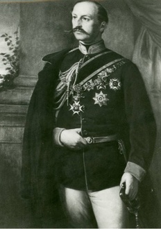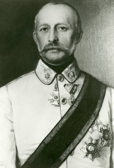 Bildnis von Alfred Graf zu Erbach-Fürstenau. Der Standesherr war zugleich Patron der Güttersbacher Kirche. Er wies eine aufgebrachte Abordnung der Gegner Meyers ab und hielt an ihm fest.