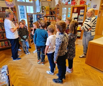 Dort stellte Frau Weiers das vielfältige Angebot an Kinderbüchern und -medien vor und erklärte, wie sich die Kinder in der Bücherei zurechtfinden können.