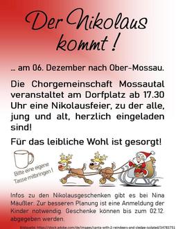Am 06. Dezember ab 17:30 veranstaltet die Chorgemeinschaft 1912 Mossautal für die Mossauer Bürger*innen am Dorfplatz (Spielplatz) einen „Nikolausabend“.