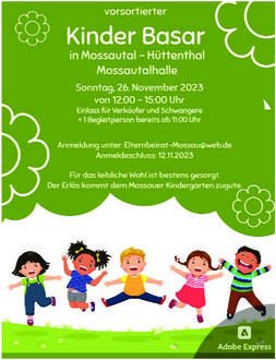 Wenn ja, dann laden wir Sie recht herzlich zum zweiten vorsortierten Kinderbasar am Sonntag, 26.11.2023 in die Mossautalhalle ein.