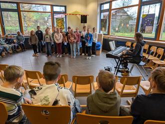 Die Klasse 3a singt ein Lied zur Eröffnung