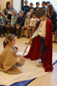 Bereits am Vormittag stimmten sich die Kinder in der Krippe und Kindergarten auf den Martinstag ein. Im Kindergarten wurde die Generalprobe des Martinsspieles durchgeführt, die Laternenlieder nochmals geübt und die Martinsgeschichte vorgelesen. Die Krippenkinder veranstalteten einen kleinen Martinsumzug durch das Jugendhaus.