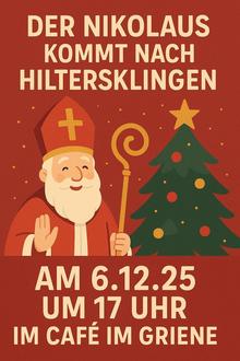 Der Ortsbeirat Hiltersklingen lädt am 6. Dezember 2025 um 17 Uhr alle Kinder und Familien herzlich ins Café im Griene ein – denn der Nikolaus kommt zu Besuch!