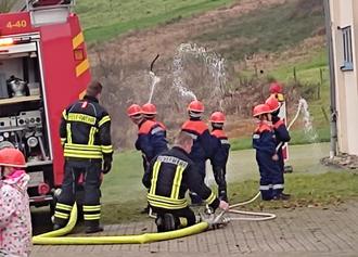 Unter den wachsamen Augen vieler Zuschauer, unter anderem unserem Gemeindebrandinspektor Timo Münch, dem stellvertretendenden Gemeindebrandinspektor und Wehrführer von Hüttenthal/ Güttersbach Patrick Hofmann, dem Wehrführer von Hiltersklingen, Ingo Katzenmeyer, dem stellvertretenden Wehrführer von Mossau, Achim Körber, Herrn Bürgermeister Dietmar Bareis und dem Ersten Beigeordneten Harald Eisenhauer stellten die jüngsten Mitglieder der Mossautaler Feuerwehr unter Beweis, dass auch sie schon große Objekte löschen könnten. Die Mossautaler Wasserteufel hatten ihre Abschlussübung ausnahmsweise nicht als erstes, sondern diesmal hinter der Jugendfeuerwehr und den Kameraden der Einsatzabteilungen. Und das nicht ohne Grun: Gab es doch auch noch das letztjährige 10. Jubiläum nachzufeiern und die Auszeichnung der Kinderfeuerwehr, die Tatze Stufe 1, zu verleihen.