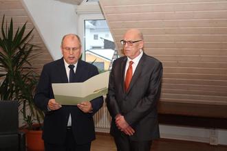 Die offizielle Ehrungsurkunde wird von Bürgermeister Dietmar Bareis feierlich verlesen.