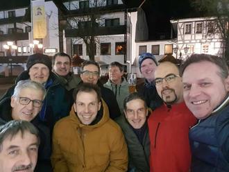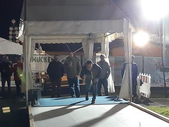 „Jedes Jahr im Winter, wenn…“ die winterliche Zufluchtsstätte der Alten Herren aufgrund der beiden Fastnachtssitzungen des KVHU belegt ist, dürfen wir uns ein Alternativprogramm zu den normalen fußballerischen Aktivitäten überlegen. In diesem Jahr kam uns der Brauereigasthof, mit der dort stattfindenden Winterwelt, zu Hilfe. Anstatt in der Halle auf Parkett konnten wir uns vor der Brauerei beim Eisstockschießen auf Synthetikeis austoben. Bevor es nach einer kurzer Regeleinweisung und einem Probewurf mit der, für uns alle, neuen Sportart losging, wurden noch im Schnellverfahren die Teams „Alt“ (Georg-Peter Kredel, Reinhard Schork, Ronnie Funke, Jürgen Gölz) und „Jung“ (Alexander Schmidt, Maic Ihrig, Marcel Neff, Mirco Dörsam) eingeteilt. Es entwickelte sich gleich eine Partie auf Augenhöhe, die auch die anwesenden Zuschauer in ihren Bann zog. Im ersten Match behielt Team „Jung“ mit 5:4 die Oberhand. Das Ergebnis wurde von Team „Alt“ im zweiten Spiel gedreht, so dass eine dritte Begegnung über den Tagessieg entscheiden musste. Nach ausgeglichenem Beginn setzten sich die Oldies nach der fünften Kehre mit 4:2 ab, so dass ein Erfolg in greifbarer Nähe schien, jedoch gelangen den Jünglingen in der letzten Kehre 3 Punkte und somit, mit einem erneuten 5:4, der Gesamtsieg an diesem Abend. Alles in Allem war es ein schöner Abend mit neuen sportlichen Perspektiven und der Androhung, dass wir die Mossautaler Winterwelt sicherlich nochmals besuchen werden.