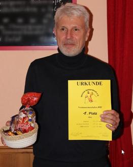 Die geschätzten Laufzeiten bewegten sich zwischen 31:45 min. und 01:01:01 Std. Am Ende sollte aber weder der Läufer mit der geringsten, noch derjenige mit der höchsten geschätzten Laufzeit bei der Vergabe der ersten 3 Plätze eine Rolle spielen. 18 Vereinsmitglieder machten sich am 05. November um Punkt 14:00 Uhr auf die Strecke, darunter 6 Frauen und 12 Männer. Als erster Mann erreichte Manfred Schubert nach 32:57 min. das Ziel. Manfred hat seine eigene Laufzeit auf 34:25 min. geschätzt, und damit Ziel um 1:28 min. verfehlt. Er schaffte es damit auf den dritten Platz. Ganz knapp, mit 01:18 min. verschätzt, lief Werner Thomasberger auf Platz 2. Mit nur 40 Sekunden an seiner Zielzeit vorbei, sicherte sich Axel Etzrodt den Titel des Vereinsmeisters. Auf den Plätzen 4 bis 12 folgten: Helmut Siefert (01:41 min.), Matthias Gerlach (02:06 min.), Gerhard Grünewald (02:06 min.), Kalli Wolf (03:32 min.), Lothar Sauer (03:35 min), Ronald Pätel (03:48 min.), Lothar Duschl (04:32 min.) und Horst Ihrig (06:56 min.). Bei den Frauen sicherte sich Petra Ihrig mit einer Differenz von 02:25 min. den 3. Platz. Platz zwei erreichte die Vorjahressiegerin Michaela Krause. Neue Vereinsmeisterin wurde Bettina Noth. Mit einer geschätzten Laufzeit von 42:00 min. und einer tatsächlichen Laufzeit von 41:57 min. verfehlte Bettina ihr Ziel nur um 3 Sekunden. Die Plätze 4 bis 6 belegten: Manuela Etzrodt (02:28 min.), Cherry Weigel (03:24 min.) und Heike Siefert (04:46 min.). Die Ehrung der Vereinsmeister erfolgte während der Jahresabschlussfeier der Abteilung Laufen des SC Güttersbach und wurde durch den 1. Vorsitzenden H.J. Schmidt vorgenommen.