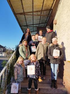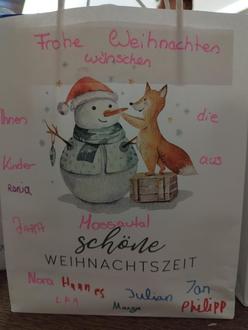 Dank Sach- und Geldspenden haben wir 10 Tüten mit Duschgel, Zahnbürsten, Zahnpasta, Deo, Seife, Kekse, Mandarinen, Nüssen und natürlich die selbstgebackenen Plätzchen gepackt.