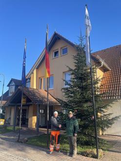 Achim Miedtke hat der Gemeinde auch in diesem Jahr erneut den Weihnachtsbaum gespendet. Er unterstützt damit die weihnachtliche Gestaltung vor dem Rathaus.