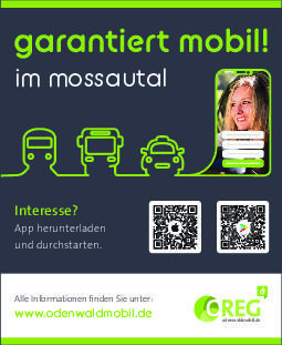Mit den öffentlichen Verkehrsmitteln im Odenwaldkreis zur persönlichen Wunschzeit unterwegs zu sein, ist längst kein Wunschdenken mehr. Mit „garantiert mobil!“ steht auch im Mossautal, zusätzlich zum klassischen Bus- und RufBus-Angebot, immer das taxOMobil parat. Denn dank der hiesigen Mobilitätsgarantie sind Fahrten von allen Mossautaler Ortsteilen nach Michelstadt oder Erbach und umgekehrt zur persönlichen Wunschzeit garantiert. Und das an 365 Tagen im Jahr, montags bis freitags von 5 bis 22 Uhr, samstags von 7 bis 22 Uhr und sonntags von 8 bis 22 Uhr.Einzige Voraussetzung für die Buchung einer solchen taxOMobil-Wunschverbindung ist die einmalige und kostenfreie Registrierung im Buchungsportal unter www.odenwaldmobil.de oder über die kostenlose “garantiert mobil!-App (iOS / Android). Alle Fahrgäste, die keine Registrierung per Internet wünschen, können sich persönlich in der RMV-MobilitätsZentrale in Michelstadt oder telefonisch unter 06061 / 979988 registrieren.Wie teuer eine taxOMobil-Fahrt letzten Endes ist, hängt von der Entfernung ab. Den Festpreis sieht der Kunde aber jederzeit vor seiner Fahrtbuchung. Im Gegensatz zu Busfahrten, die den jeweiligen RMV-Tarif kosten, kommt beim taxOMobil lediglich ein entfernungsabhängiger Zuschlag hinzu. Dafür müssen Fahrgäste aber auch nicht zur nächsten Bushaltestelle laufen, sondern werden direkt vor der Tür abgeholt!Und dieser Zuschlagspreis lässt sich durch frühzeitiges Buchen um bis zu 30% senken. Zudem subventioniert die Gemeinde Mossautal, wie die übrigen Odenwälder Kommunen auch, die taxOMobil-Zuschläge nochmals zu 50%. Damit kostet beispielsweise eine taxOMobil-Fahrt aus Unter-Mossau ins Zentrum von Erbach rund 7,00 EUR. Wer eine RMV-Zeitkarte, wie das Schüler- oder SeniorenTicket Hessen, besitzt und diese in seinem Kundenprofil hinterlegt, spart sich bei allen Fahrtangeboten den RMV-Tarif. Damit reduziert sich jede taxOMobil-Fahrt sogar bis runter auf 3,20 EUR.Haben Sie Fragen? Das Serviceteam der RMV-MobilitätsZentrale Michelstadt steht Ihnen gerne beratend zur Seite.RMV-MobilitätsZentrale MichelstadtTelefon: 06061 979988E-Mail: mobiz@odenwaldmobil.dewww.odenwaldmobil.de