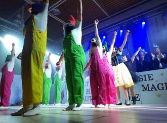 Zum großen Finale kamen alle 125 Aktiven noch einmal auf der Bühne, sangen das „Mossautal Helau“ und erhielten mit dem lang anhaltenden Beifall der Zuschauer ihren Lohn.