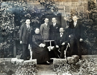 Nachbarschaft: Familienfoto der Familie Helm („Zum Goldenen Löwen“) im Schulhausgarten 1924.