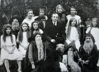 Aufnahme ca. 1927/1928. Lehrer Röth inmitten seiner Schüler, die sich für ein Märchenspiel verkleidet hatten.
