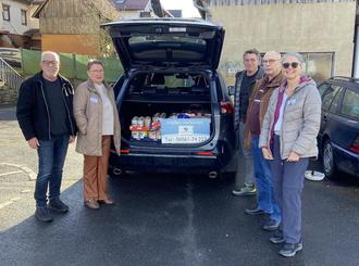 Am 09.12.25 wurden von der Nachbarschaftshilfe Michelstadt e. V. Lebensmittel im Wert von 150,00 € an die AWO-Obdachlosenhilfe in Michelstadt übergeben. Die Spende soll dabei helfen, Obdachlose bei Bedarf schnell mit einer Mahlzeit versorgen zu können. Unser Bild zeigt: 1. v. l. Michael Schmidt (AWO), 3. v. l. Christian Merkel (AWO) sowie Rita Jacob, Hans-Jürgen Jacob und Ingrid Kolb, die zum Vorstandsteam der Nachbarschaftshilfe Michelstadt e. V. gehören.