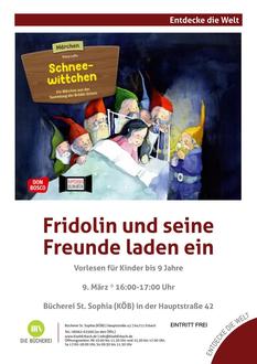 Fridolin und seine Freunde laden ein zur Vorlesestunde. Für Kindergartenkinder und Kinder bis 8 Jahre gibt es schöne Geschichten und das Kamishibai-Vorlesetheater.