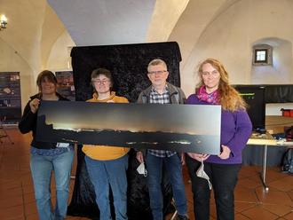 Mitglieder der Nabu-Nachthimmel-AG Odenwaldkreis mit einem Foto von Christian Rossberg