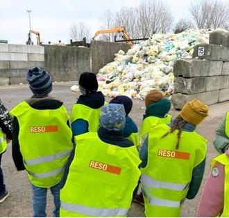 Passend zur Unterrichtseinheit „Müll“ im Fach Sachunterricht besuchten die Erstklässler der Schule am Hollerbusch mit ihren Lehrerinnen den Wertstoffhof RESO in Michelstadt. Nachdem sich alle bei einem gemeinsamen Frühstück gestärkt hatten, konnten die Kinder den Wertstoffhof aus der Nähe kennen lernen. Dazu mussten zu Beginn alle Besucher erst einmal gelbe Sicherheitswesten anziehen, damit Groß und Klein auf dem Gelände gut zu sehen waren. Schließlich sind die Sattelzüge mit ihrem 40 Tonnen Gesamtgewicht riesengroß. Tim Dörsam, Betriebsleiter der RESO, führte die Klassen 1a und 1b über den Hof. Hier gab es ausreichend Gelegenheit, mehr über Recycling, Abfalltrennung und die umweltfreundliche Entsorgung von Müll zu erfahren. Die Kinder stellten viele Fragen und waren beeindruckt von der Menge an Müllsäcken, Autoreifen oder Glasflaschen, die sich auf dem Hof befanden. Auch die unterschiedlichen Fahrzeuge sorgten für große Augen. So durfte die Klasse 1a die Fahrzeugwaage testen: das Gewicht der gesamten Klasse lag bei mehreren hundert Kilogramm. Für die Kinder der Klasse 1b hingegen war es auf jeden Fall ein Highlight im Müllauto auf dem Beifahrersitz Platz zu nehmen. Mit Frau Nieratzky bekamen die Kinder die Gelegenheit einen eigenen Blumentopf für zuhause zu bemalen und zu bepflanzen. Die Lehrerinnen der Schule am Hollerbusch bedanken sich herzlich bei Herrn Dörsam, Frau Nieratzky und dem Team für die Führung und die Möglichkeit, den Wertstoffhof besuchen zu dürfen. Diese Erfahrung wird den Kindern sicherlich noch lange in Erinnerung bleiben und dazu beitragen, ihr Umweltbewusstsein zu stärken.