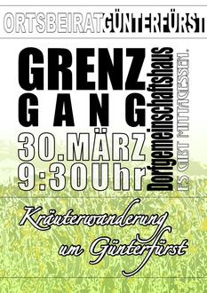 Günterfürst: Der Ortsbeirat Günterfürst lädt zu seinem diesjährigen Grenzgang am 30. März 2025 ein. Es ist jeder herzlich willkommen. Start ist um 9:30 Uhr am Dorfgemeinschaftshaus.