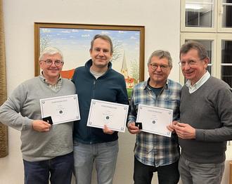 Am 21.02.2025 fand die jährliche Mitgliederversammlung der Trachtenkapelle Michelstadt statt. Bei dieser Gelegenheit wurden drei ganz besondere Jubiläen geehrt. Der Dirigent Horst Petersik sowie Dr. Karl Krämer traten vor 50 Jahren in die Kapelle ein. Auch Eugen Tscherepanow konnte in diesem Jahr sein 25-Jähriges Jubiläum feiern. Der erster Vorsitzende Erich Petersik überreichte den Jubilaren eine Ehrenurkunde und bedankte sich für das langjährige Engagement.