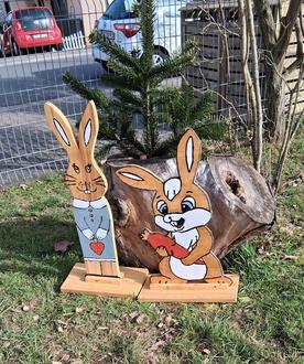 Wie in den Jahren zuvor kommen auch in diesem Jahr die Boten des Frühlings und des bevorstehenden Osterfestes in Form von gebastelten Osterhasen und den bekannten Schmetterlingen nach Stockheim. Unser Ortsbeiratsmitglied Andreas Wibiral hat für den Naturkindergarten in der Alsfelder Straße gleich eine ganze Osterhasenfamilie geschreinert.