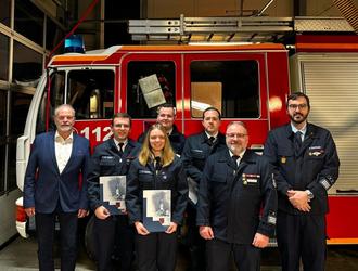 Für 15 Jahre Dienstzeit in der Feuerwehr Dorf-Erbach wurde Alexander Hupp das bronzene Ehrenabzeichen der Kreisstadt Erbach verliehen. Jens Erhard wurde zum Feuerwehrmann, Lucas Flath zum Hauptfeuerwehrmann und Franziska Hupp Oberlöschmeisterin befördert.