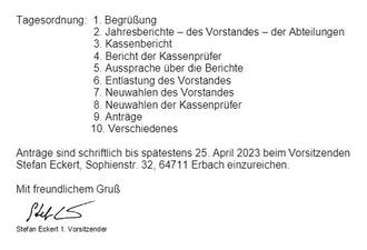 Der TSV 1860 Erbach e.V. lädt ein zur Jahreshauptversammlung 2023.