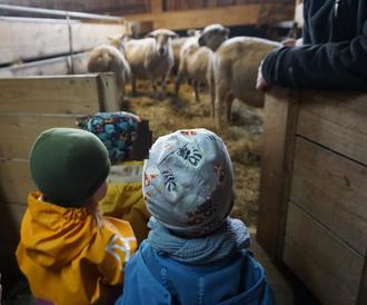 Die Krippengruppen des Kindergärtchen e.V. aus Michelstadt besuchten im März den Schafstall der Familie Eckert. Treffpunkt war der Hundeplatz in Weiten Gesäß, hier sammelten sich die Kinder der jeweiligen Krippengruppen. Von dort aus ging es nach einem kleinen ersten Frühstück runter in den Schafstall der Familie Eckert. Die Schafe begrüßten die Kinder mit lautem Geblöke und die Kinder trauten sich recht schnell auch in den hinteren Teil des Stalls, dort gab es zwei kleine Lämmchen zu bestaunen. Die Schafe durften gestreichelt und gefüttert werden. Frau Eckert erklärte den Kindern, dass die Schafe seit ein paar Tagen auch wieder auf die Wiese hinter dem Stall dürfen und dass noch ein paar Lämmchen in den nächsten Wochen auf die Welt kommen. Sie holte eins der Lämmer aus dem Stall und die Kinder durften das Tier ganz nah erleben. Alle Kinder waren mutig im Stall und ganz fasziniert von den großen und kleinen Schafen. Nach einem zweiten Frühstück direkt neben dem Schafstall, ging es den Berg hinab zur Bushaltestelle und mit dem City Bus wieder zurück Richtung Kindergärtchen.