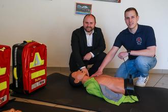 Die Freiwillige Feuerwehr Bullau e. V. hat für über 5.000,00 € Ausbildungsmaterialien für das HvO-Team Bullau (Helfer vor Ort) beschafft. Hierfür hat die Volksbank Odenwald eine großzügige Spende in Höhe von 3.000,00 € geleistet. Die Spendenübergabe fand am 09.04.2025 im Feuerwehrhaus Bullau statt. Hier konnte der 1. Vorsitzende und Wehrführer Nico Bartmann dem Regionalleiter Erbach der Volksbank Odenwald, Christian Krüger, u. a. die neu beschafften Reanimationspuppen vorführen. An diesen kann künftig eine Reanimation und das Intubieren geübt werden.